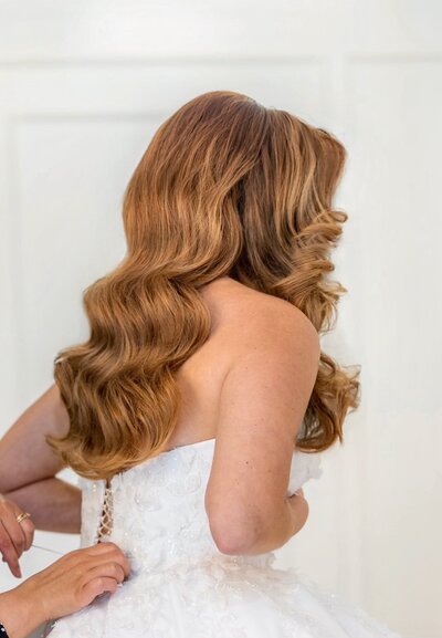 Hollywood Waves are the luxury, red-carpet version of bridal hair: structured, glossy, sculpted side waves that hold their shape all day. They’re polished, dramatic, and glamorous—perfect for brides who want that “effortlessly expensive” look.